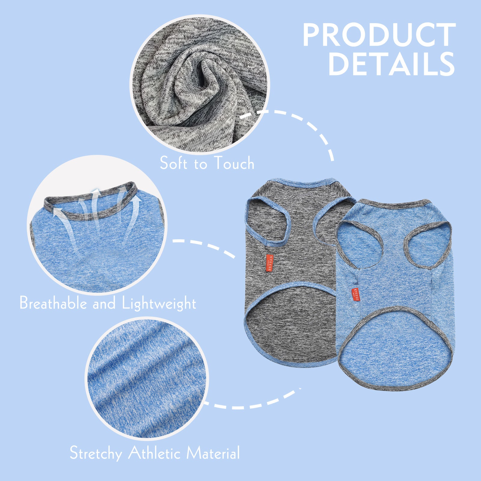 KYEESE 2 Pack Dog Shirts- Sun Protection Quick Dry Reflective Label Sleeveless Dog Vest