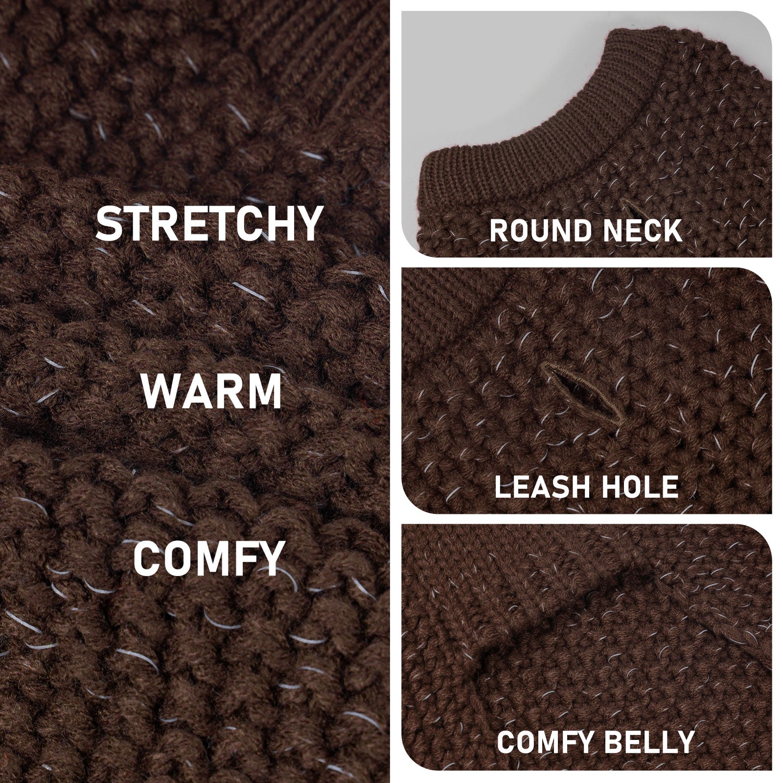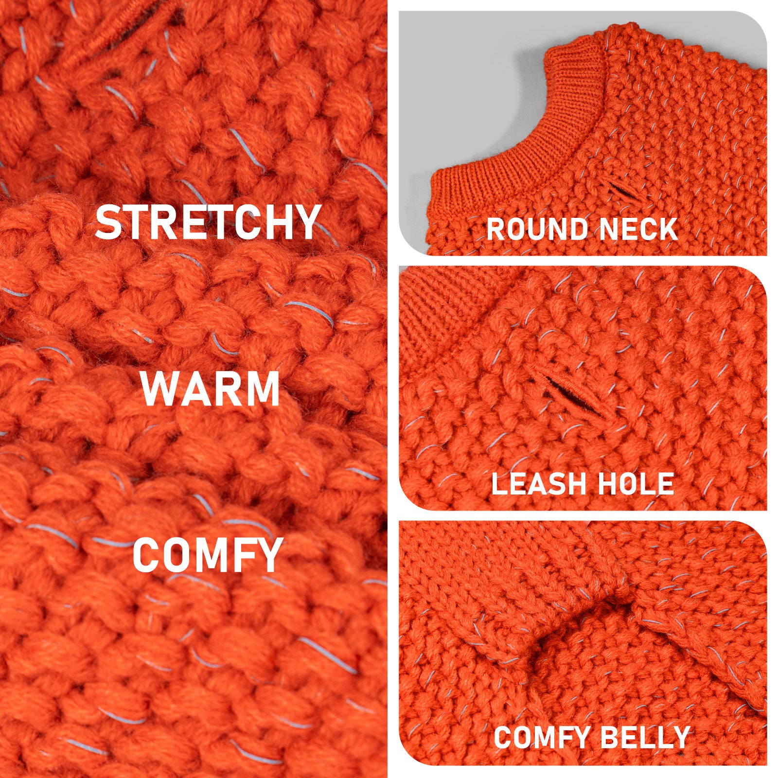 KYEESE Dog Sweater – with Leash Hole & Reflective Yarn, Thick Warm Pullover