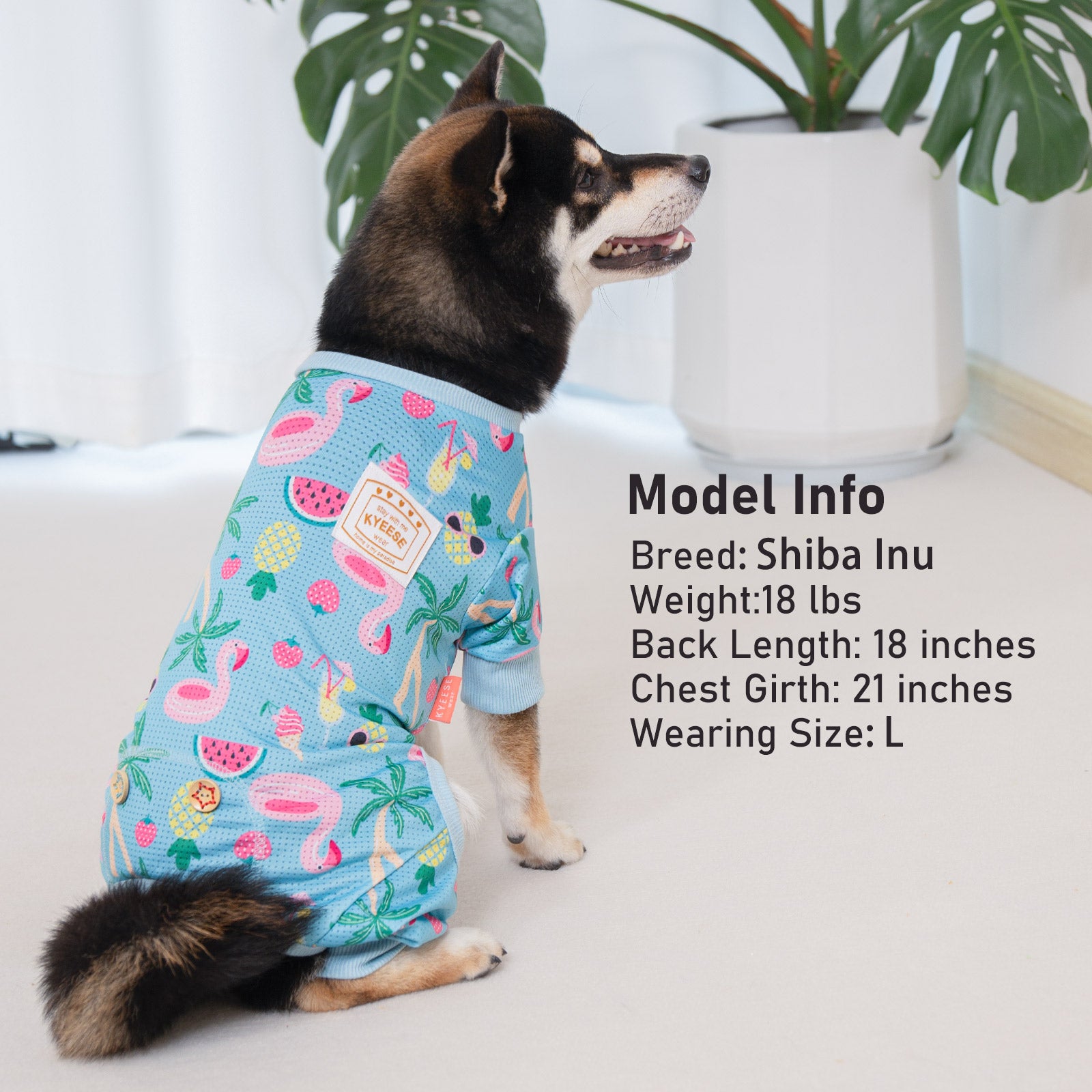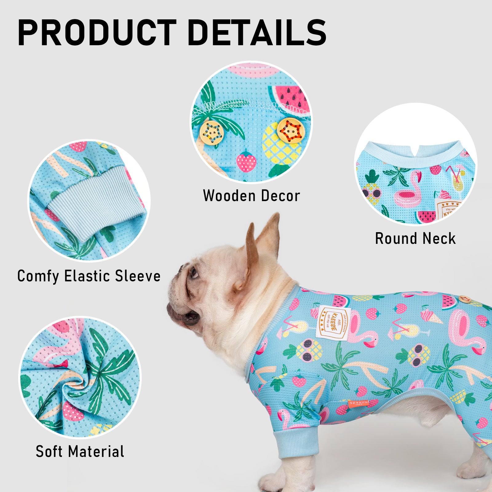 Dog pajamas-made of lightweight, quick-drying, and breathable mesh fabric, perfect for summer wear. Soft and stretchable material ensures comfort for your dog's daily wear. Pullover design makes it easy to put on and take off.