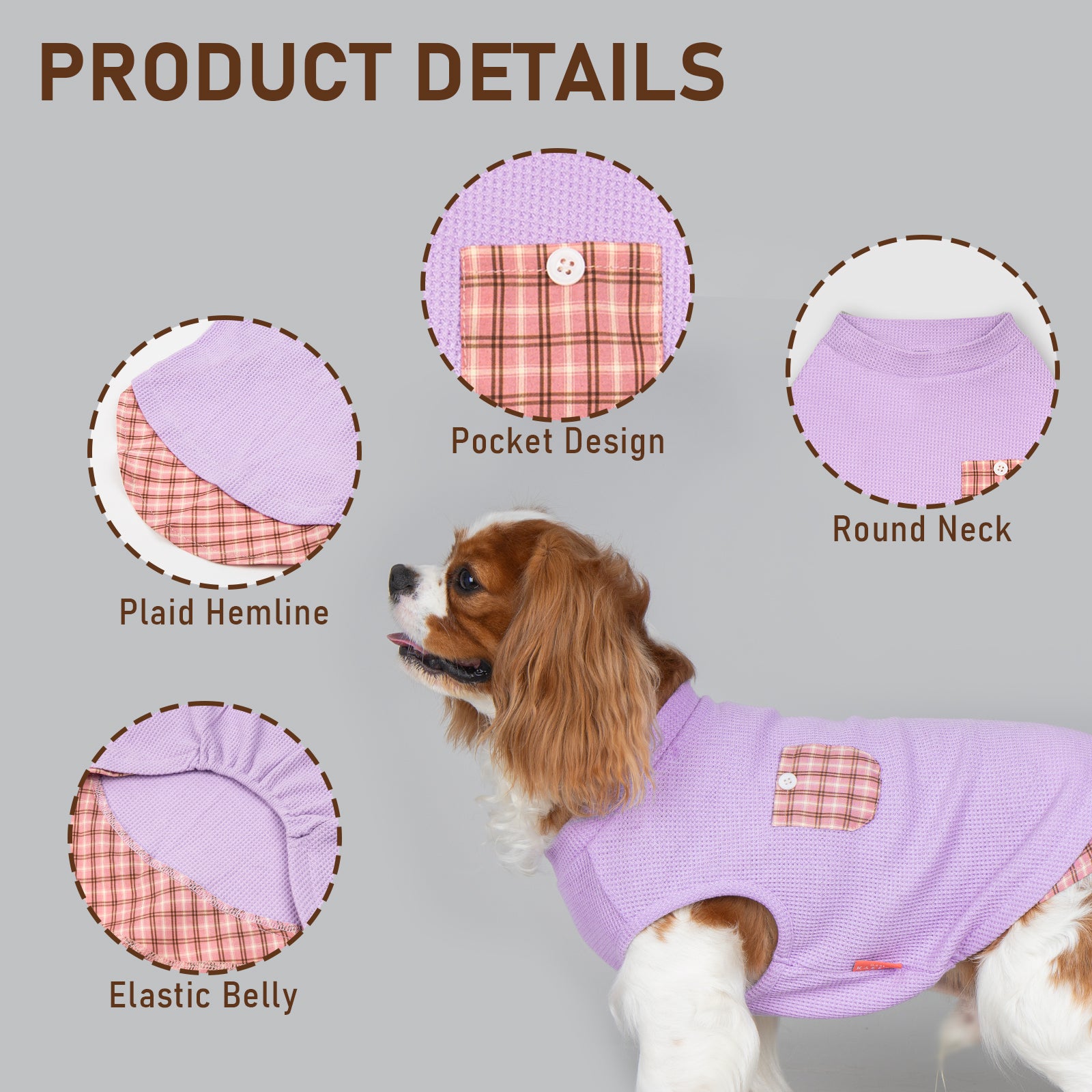KYEESE Waffle Dog Shirts-with Pocket Decorations and Plaid Patchwork