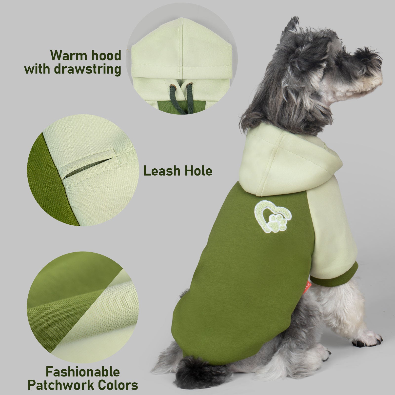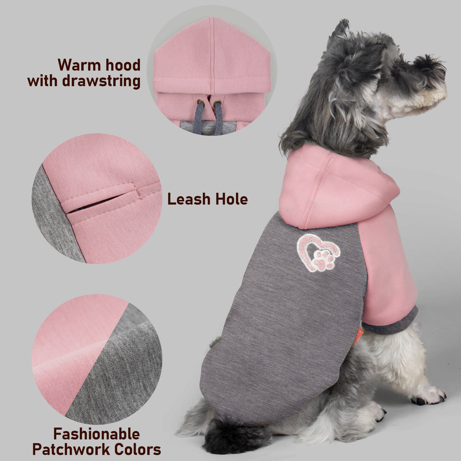 Sports and Daily: Designed for fur babies who love sports! The hood comes with an adjustable drawstring and leash hole, making it suitable for outdoor sports or daily wear. Ashion&Comfort: The back is printed with soft heart-shaped embroidery print, long sleeved design, loose fit, combining trendy street style and comfort.